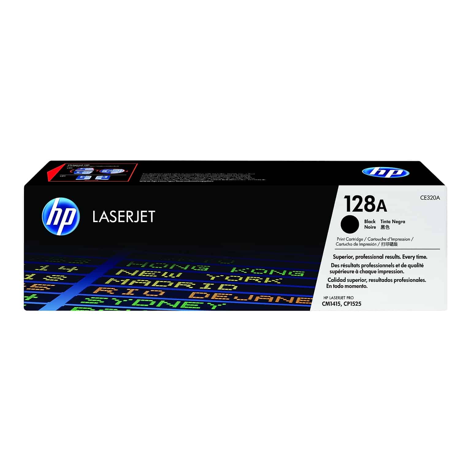 HP 128A Black LaserJet Toner Cartridge (CE320A) provides consistency and high quality for printing delivering rich color clarity on every page.